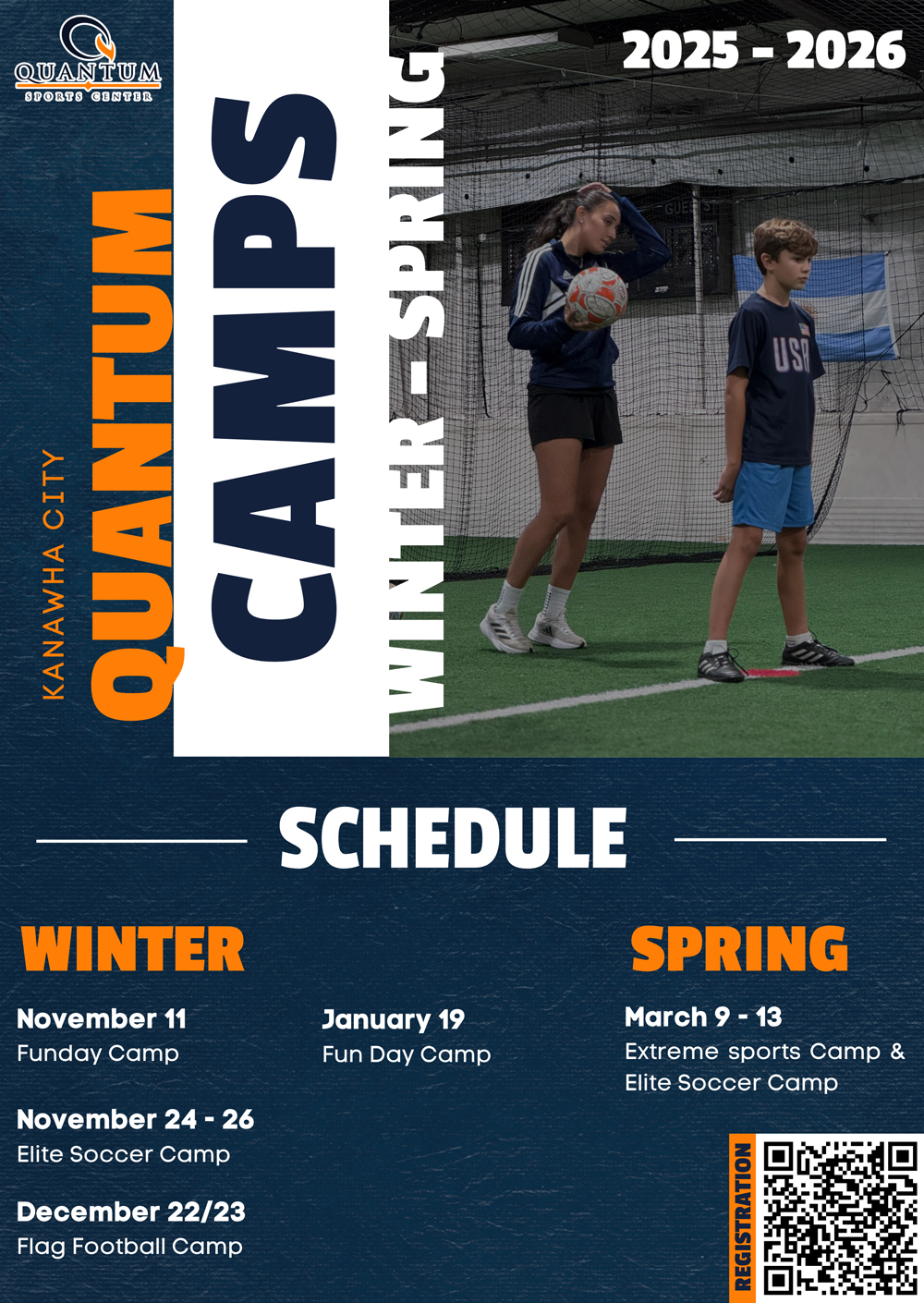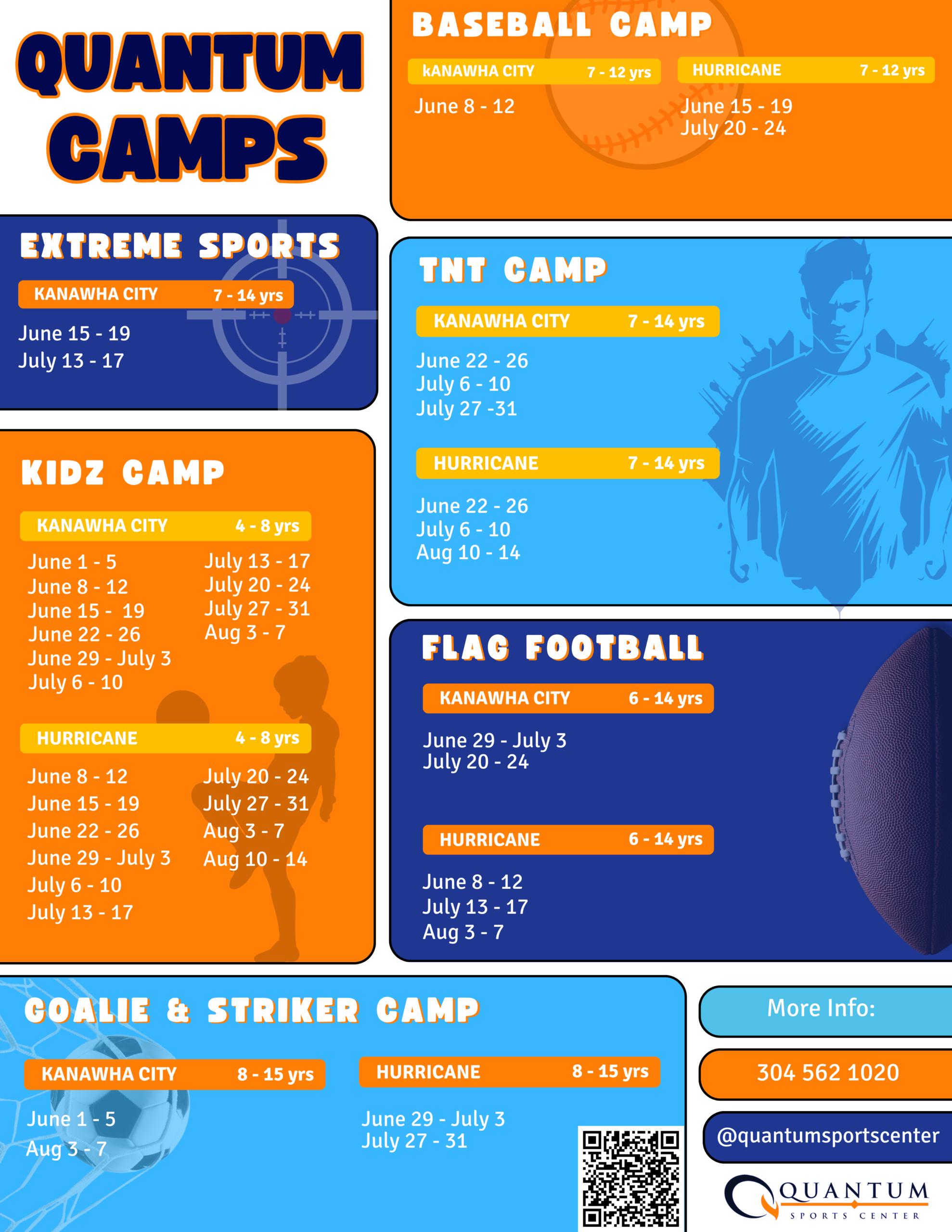 Quantum Sports Center provides a variety of seasonal camps reguardless of the time of year. Check out our lists below!