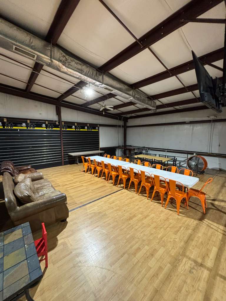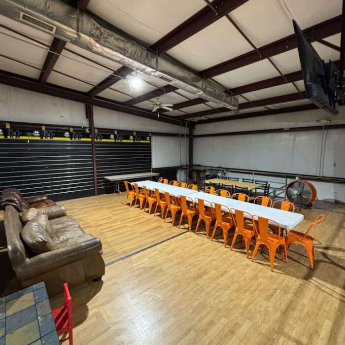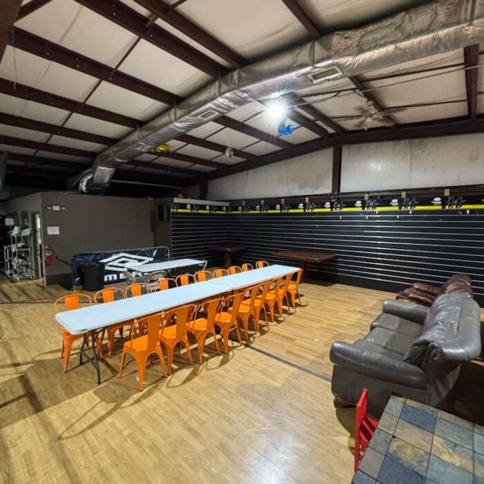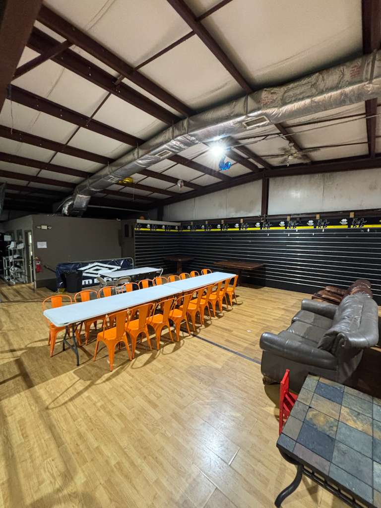 On our indoor soccer field we book 3 parties at the same time. Each Party has its own area with tables and chairs to set up (two upstairs and one downstairs).